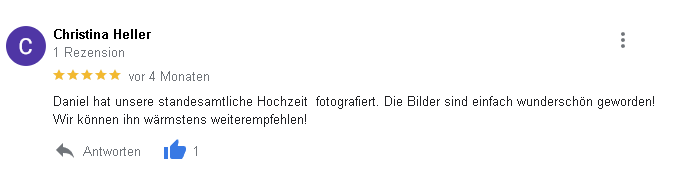 Wenn ihr mit den Bildern zufrieden seid, wäre eine positive Bewertung auf Google großartig!